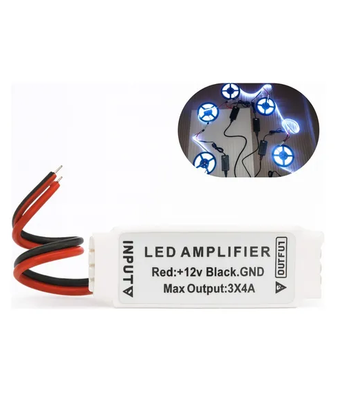 Amplificador sinal fita led Rgb 5050 3528 conector repetidor as fitas de led são ótimos acessórios para melhorar Iluminação Interna e externa do seu carro. Além de iluminar com alta potência, ela também garante muito mais estilo para o automóvel, principalmente quando a fita de led é colorida. Quer instalar mais de uma fita e não sabe como ? É simples! Basta usar esse amplificador de sinal.