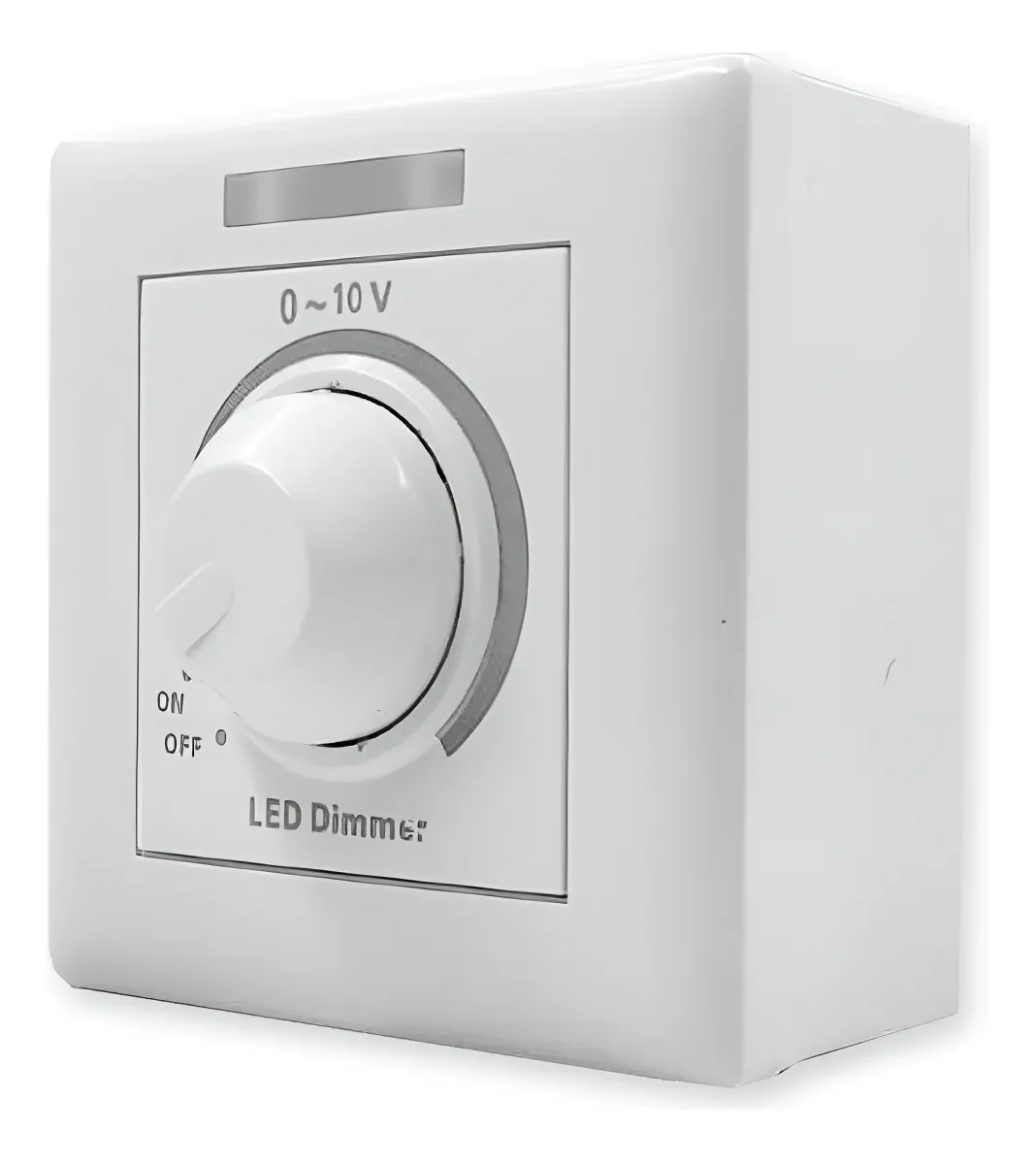 Dimmer analógico sobrepor com fácil instalação usado em corrente continua, fita led, lâmpadas, ventiladores e fontes dimerizáveis.