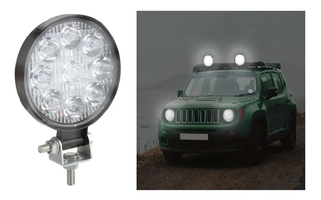 - 1 Farol de milha redondo 9 leds 27w 10/30v