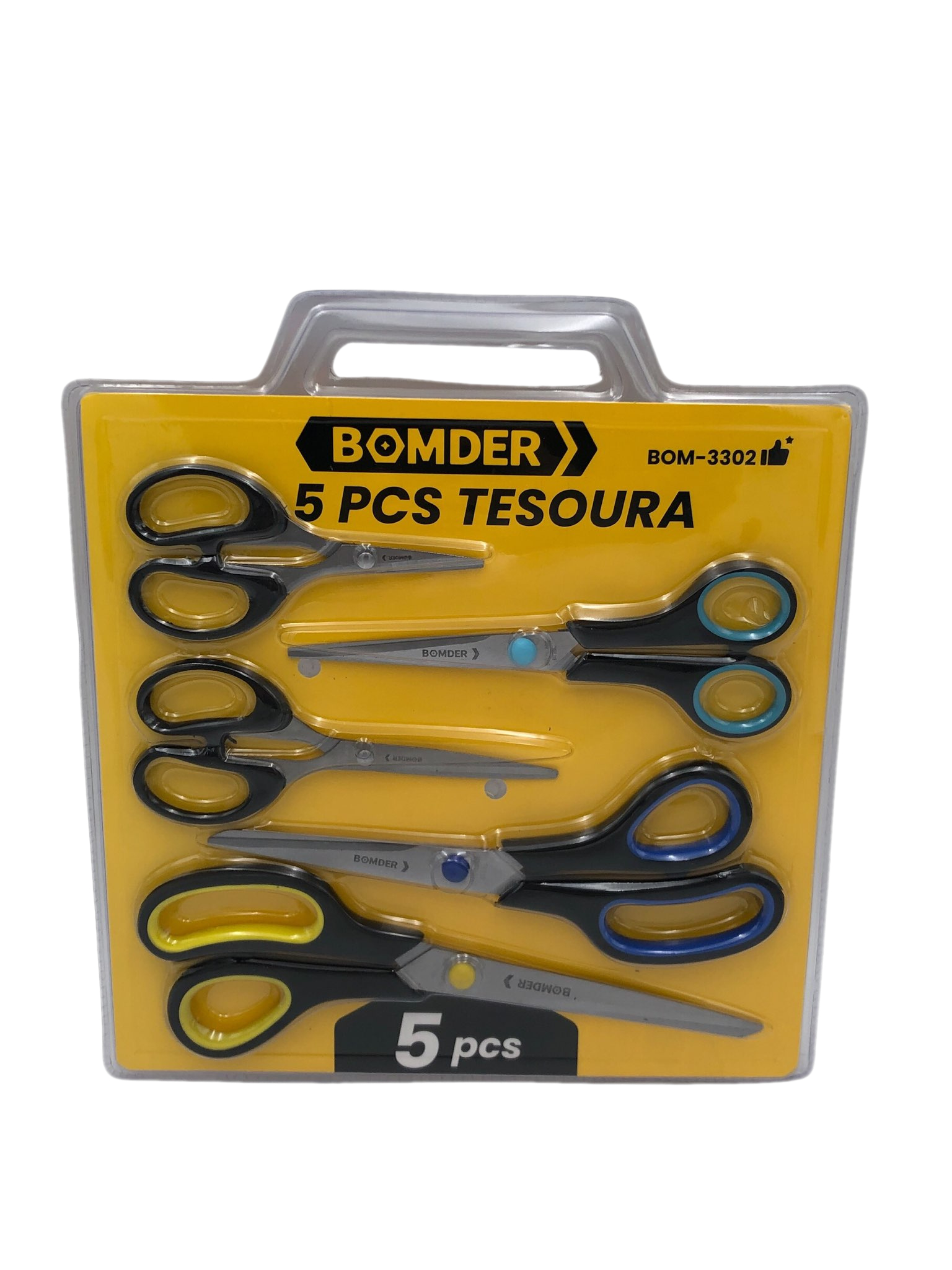 Kit com 5 tesouras de tamanho diferentes, pontudas Universal