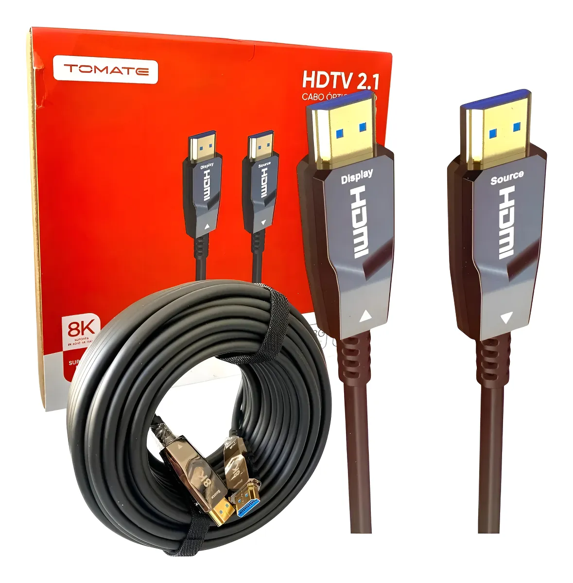 O Cabo HDMI 2.1 8K de Fibra Óptica é o cabo mais avançado do mundo, ele suporta a mais recente tecnologia HDR (High Dynamic Range), HLG (Hybrid Log Gamma, RGB Completo, VRR, QMS e muito mais. Sem delay em imagens e sons instantâneos, é ideal para gamers, streamers e projetos que exigem extrema qualidade e transmissões sem interferências.